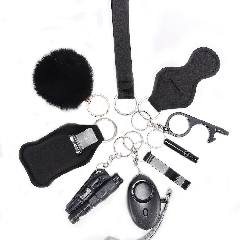 Stay safe and prepared with this comprehensive self-defense keychain set designed specifically for women. This complete safety kit includes a personal alarm, window breaker, and essential self-defense tools - all conveniently attached to your keychain for instant access when you need it most.